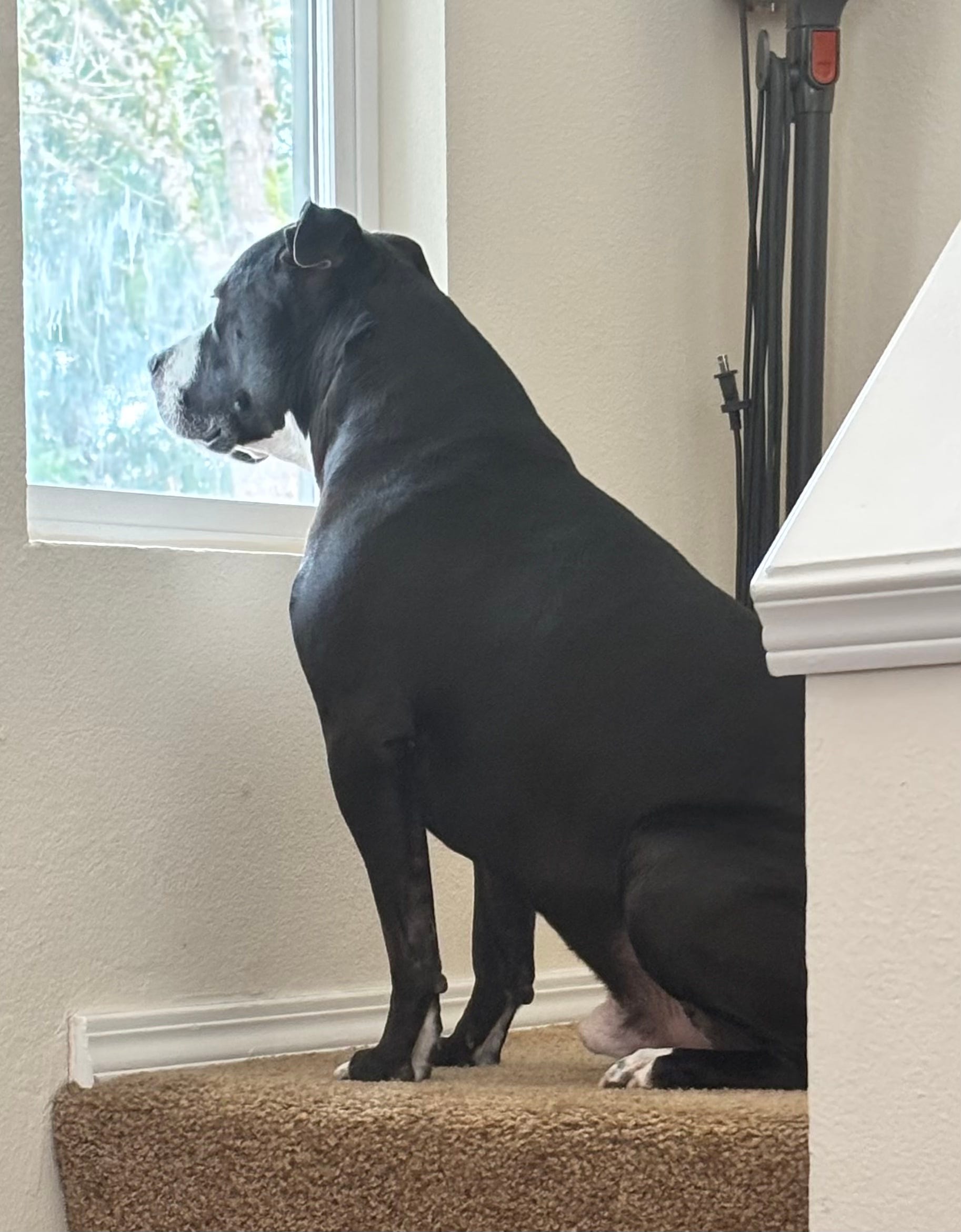 Bob recovered. He always does. Maple and I finished with the floor. The coffee was ready. The Strait of Hormuz was still closed. The Kirk essay had 148 views. Trump’s Power Plant Day threat was still live on Truth Social, 4,000 likes, the machine grinding forward without any apparent awareness that somewhere in the Pacific Northwest two people had just spent Easter morning on their knees next to a pit bull who looked sorry.